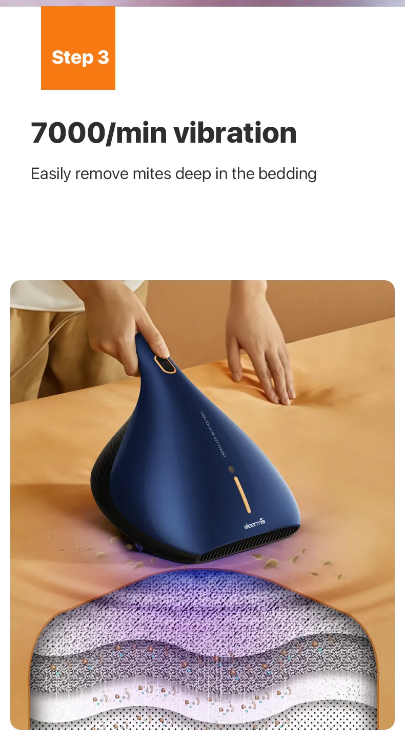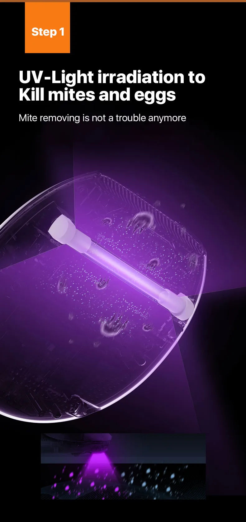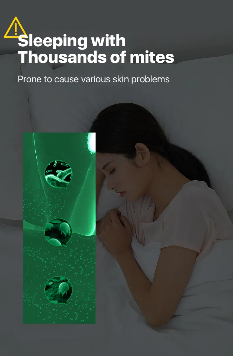 Professional-grade UV light kills up to 99% of mites, bacteria, and viruses without damaging fabrics.