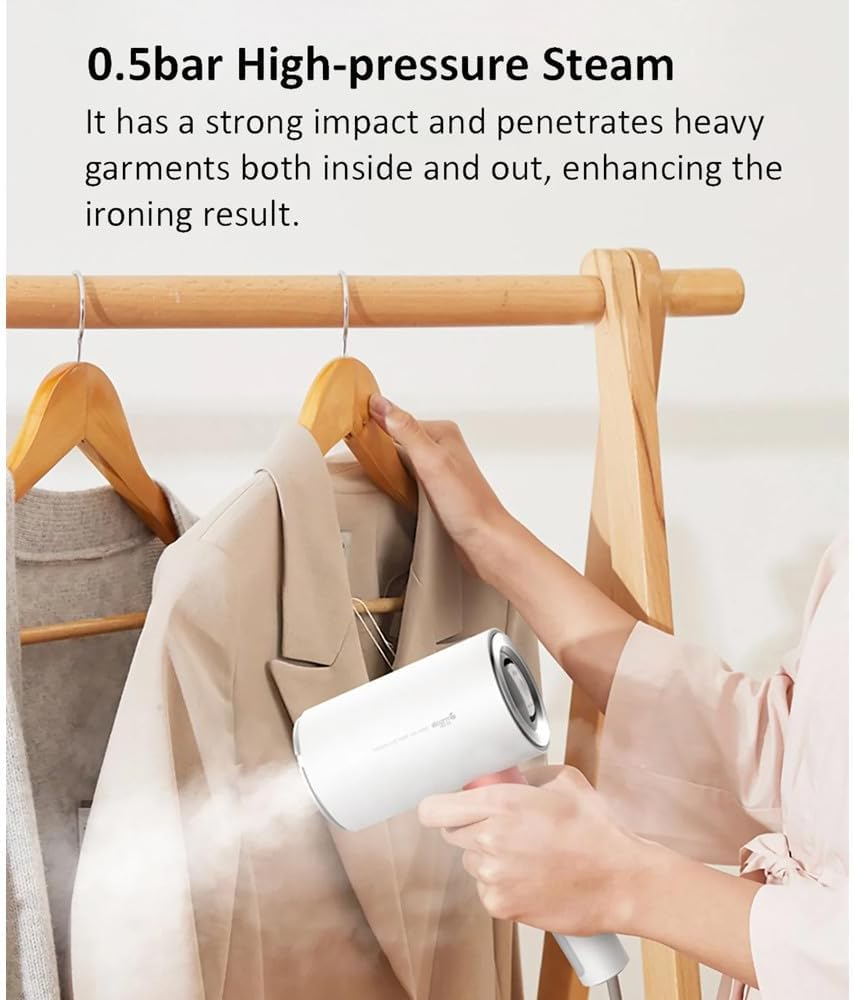 The Deerma HS200 is a compact, multi-functional garment care essential, combining the power of a high-pressure garment steamer with the precision of a flat iron. Designed for both hanging and flat ironing, it delivers wrinkle removal and sterilization in one easy-to-use device — perfect for home use and travel.