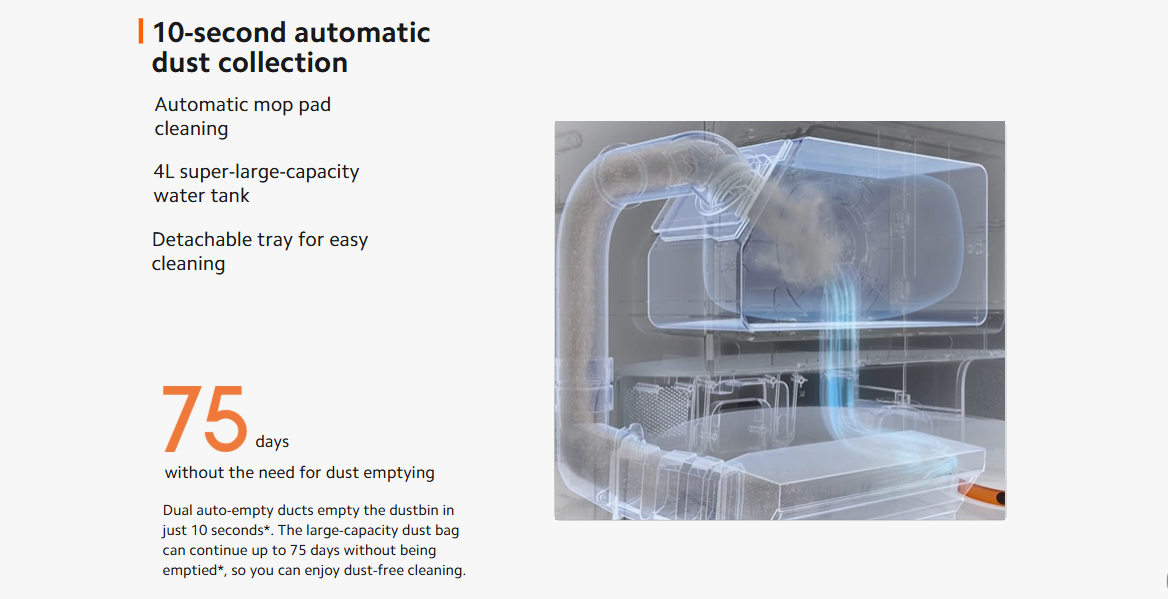 Forget daily emptying. The smart base station handles up to 75 days of dust before needing a refill.
