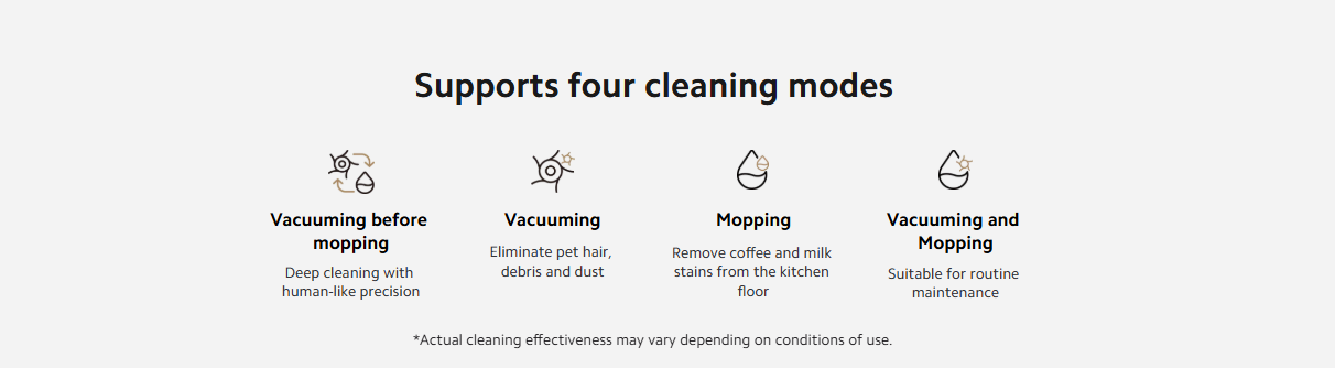 Cleans longer on a single charge. Get 140 minutes of vacuuming + mopping in Standard Mode.
