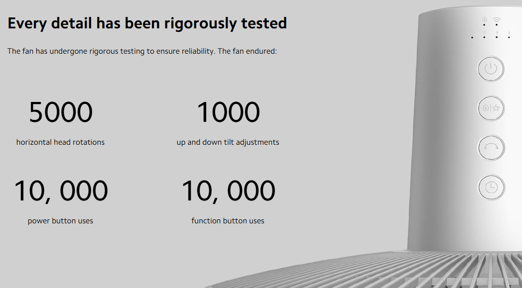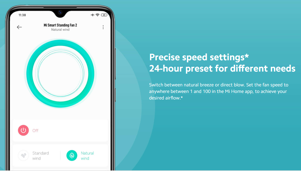 - Rated power: 15W (Mi Smart Standing Fan 2) vs. 32W (original Mi Smart Standing Fan) – over 53% more efficient.