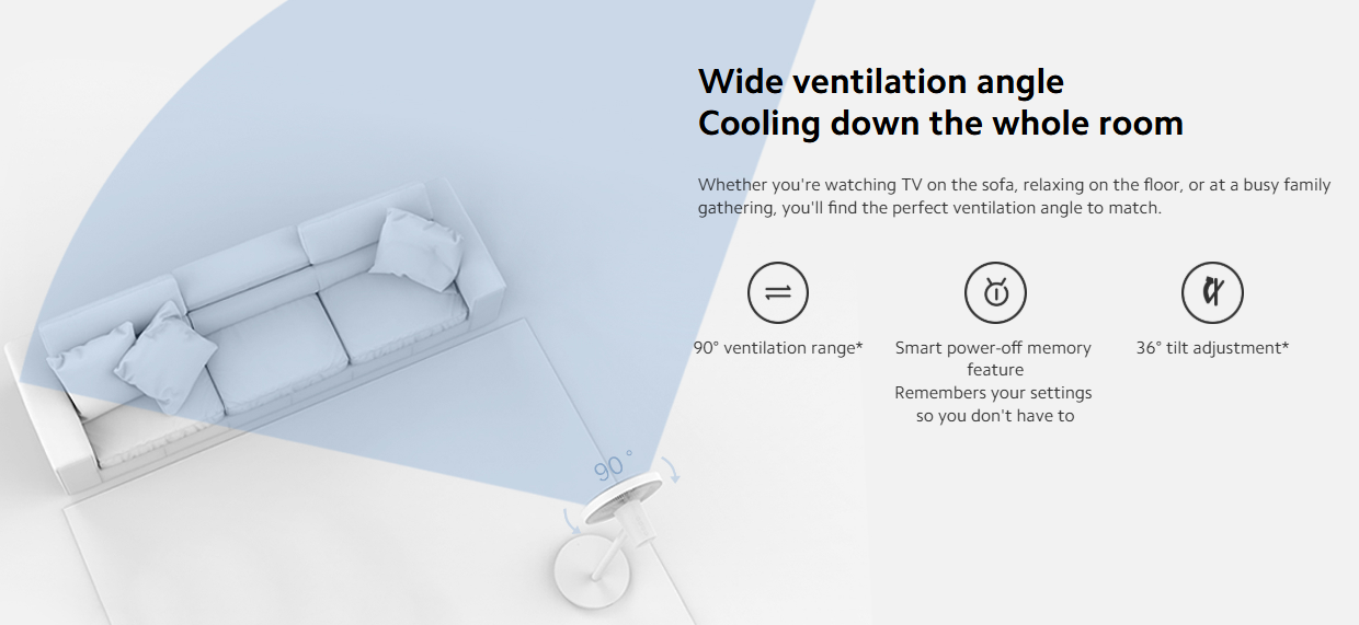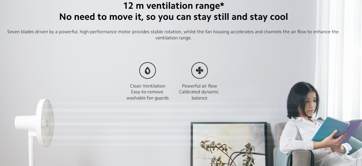 14m Ventilation Range – Powerful airflow that reaches across the room