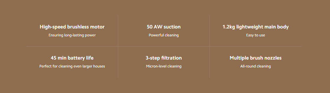 Suction Power: 20 aW (Standard) / 50 aW (Max)